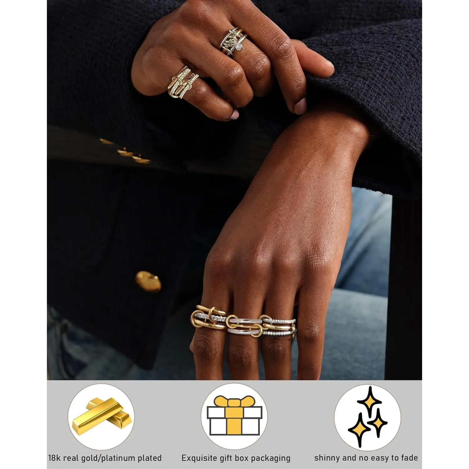 ·Exceptional Service - Our 18k gold plated rings is perfect for everyday jewelry. We have satisfaction guarantee for offering our customers perfect service. If there are any problems with the gold stackable rings, please feel free to contact us. We will solve your problem within 24 hours.
