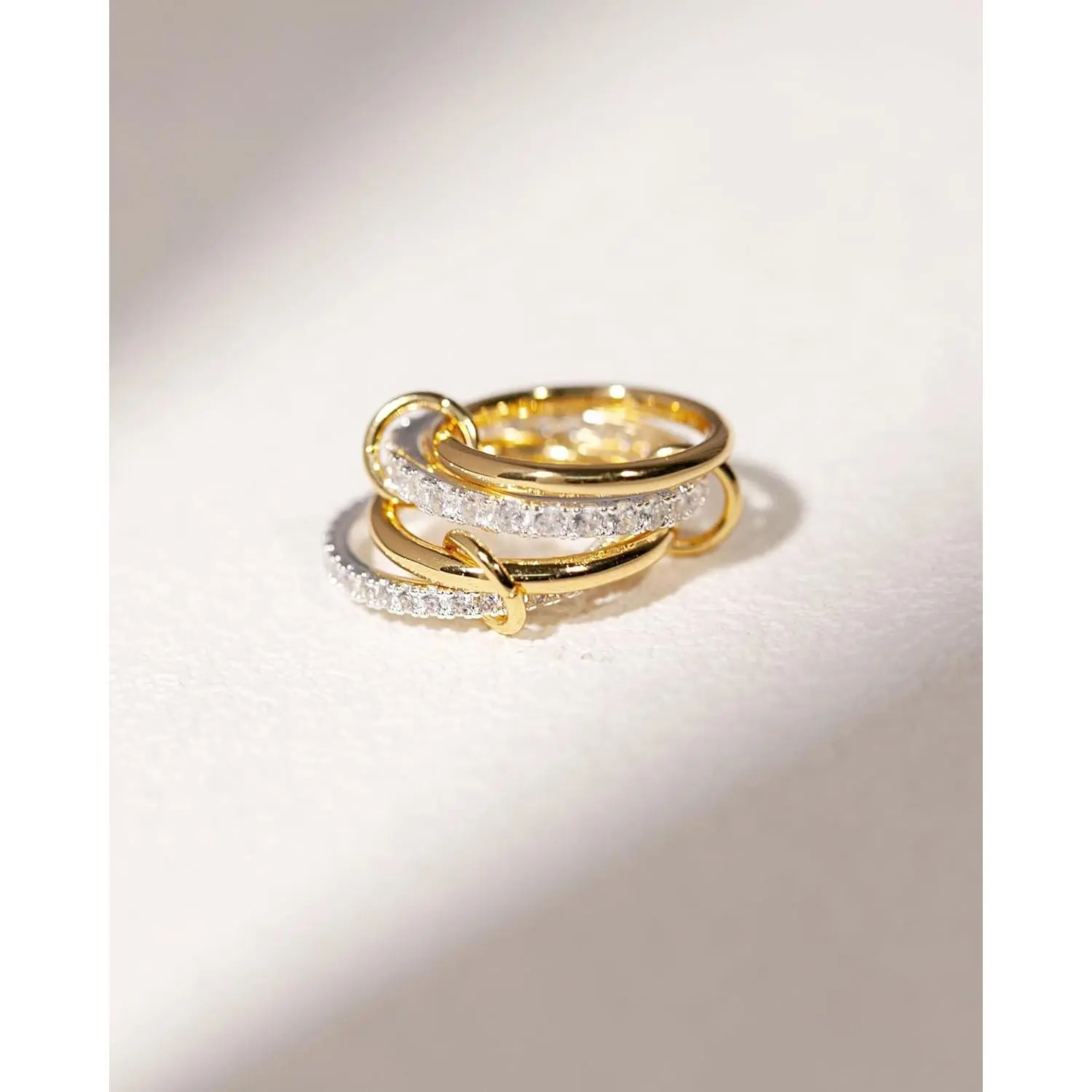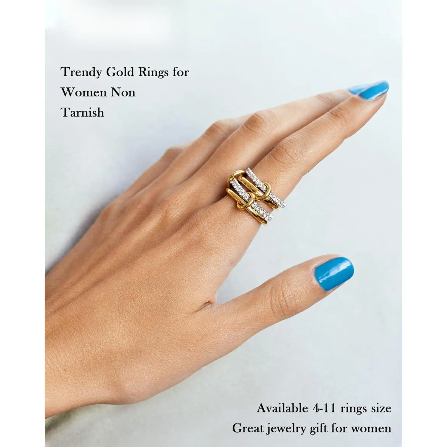 ·Women's Stackable Rings - This chunky ring set includes two plain gold band rings and two cubic zirconia silver rings, all connected by a cute gold jump ring.There are many combinations with this ring set, which will effortlessly enhance your sense of style.