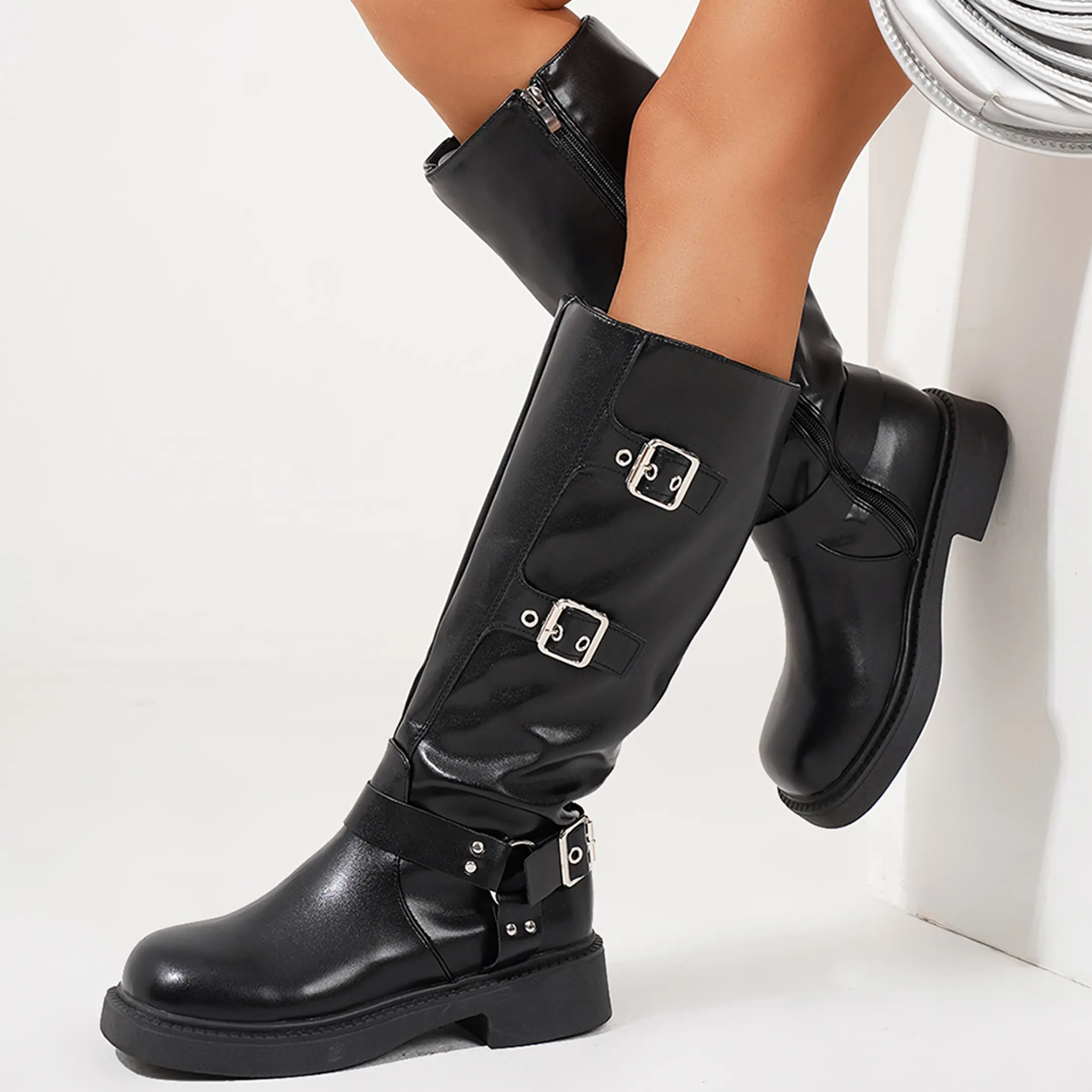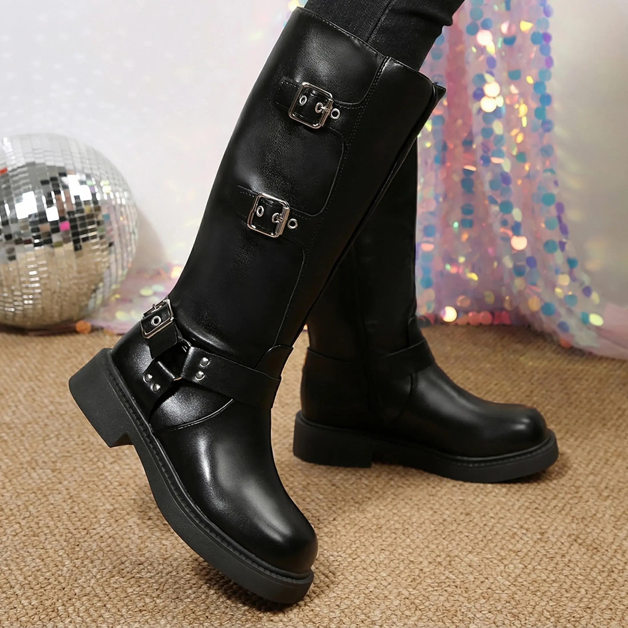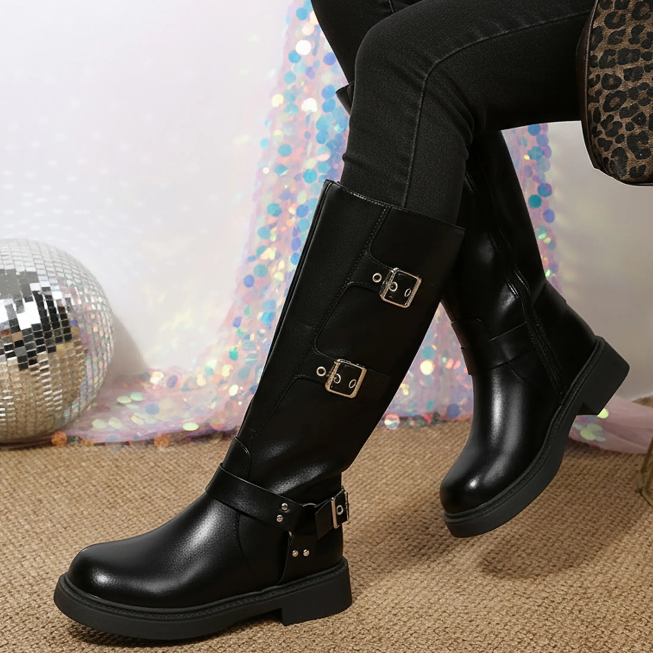 Buckles Boots:These Wide Calf boots can be paired with socks in spring and autumn, making them look fashionable and unique in summer.