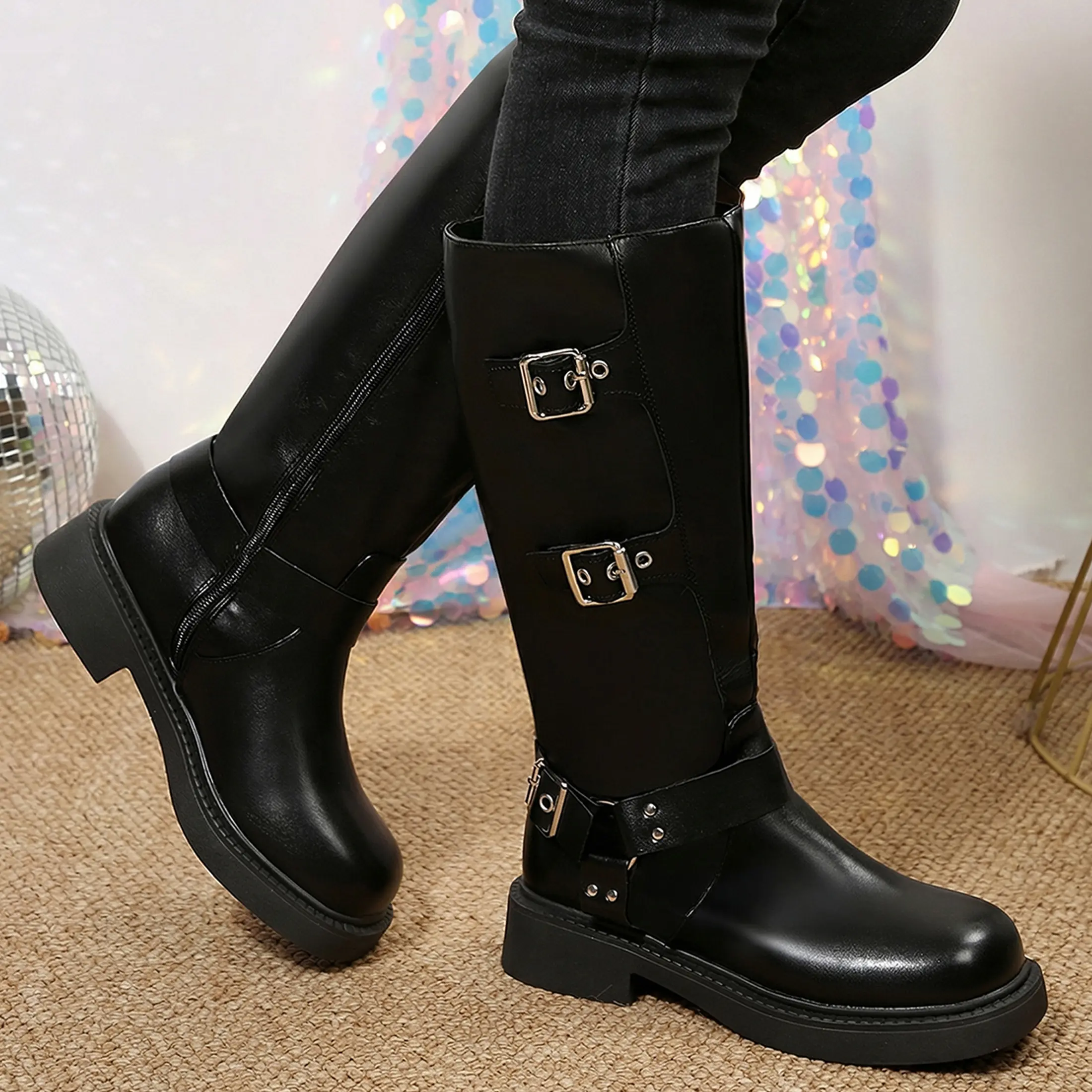 Design:These Riding Boots feature zipper design,chic buckled ,rubber sole,chunky chunky block heel,Pull On Updesign.