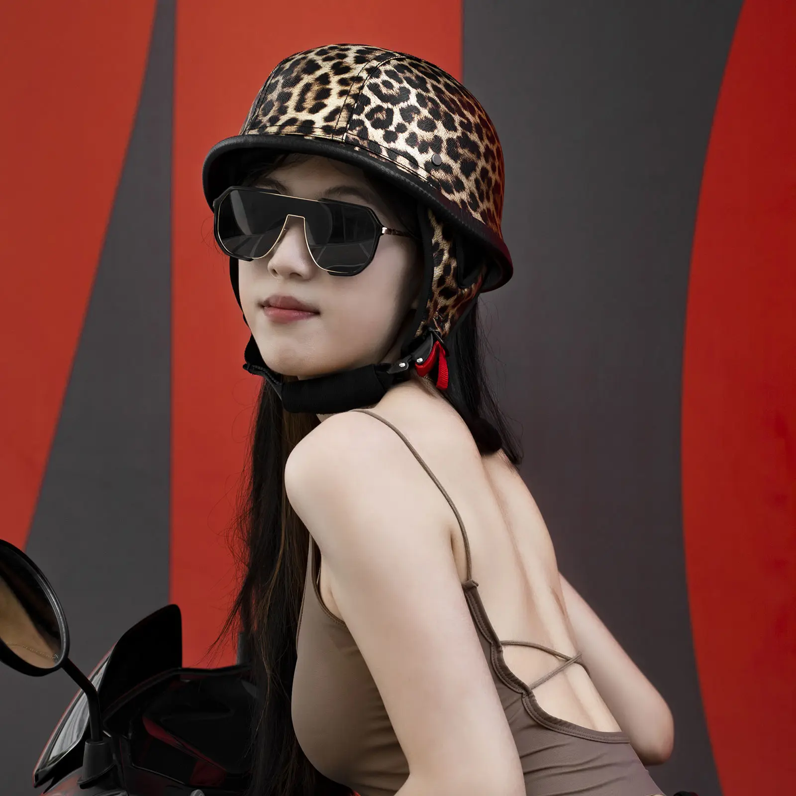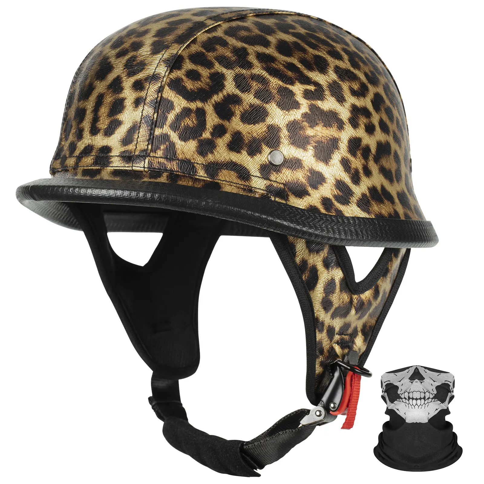 DOT Certified Vintage Open Face Motorcycle Helmet – Lightweight German Style Half Helmet for Cruiser Scooter Riders