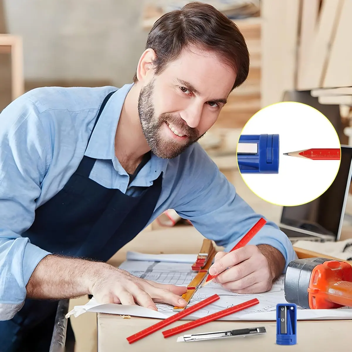 ·Art Knife: Ideal for detailed carpentry drawings. 📏