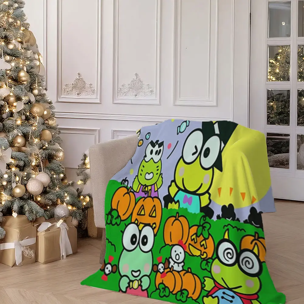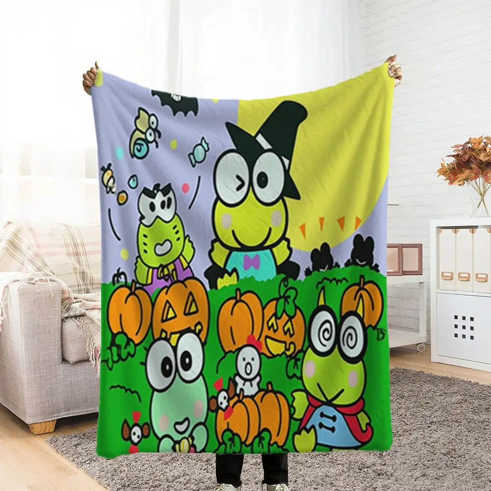 Keroppi Cartoon Pattern Blanket, Thick Fleece Blanket, Warm Blanket for Bedroom, Couple-Exclusive Blanket, Oversized Sofa Blanket, Throw Blanket for Living Room
