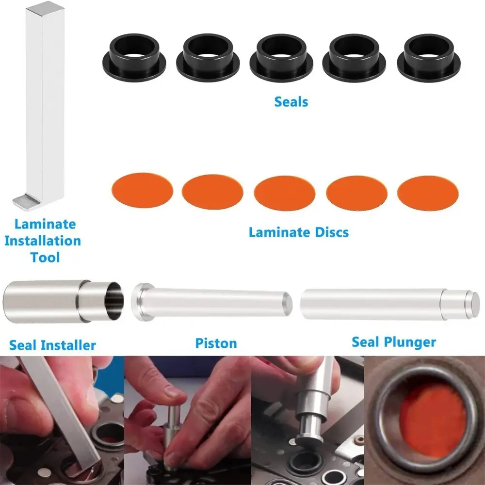 included helps get that laminate disk in place. (Note: Required to install the pusher piston into the bore before pushing the seal into place.)