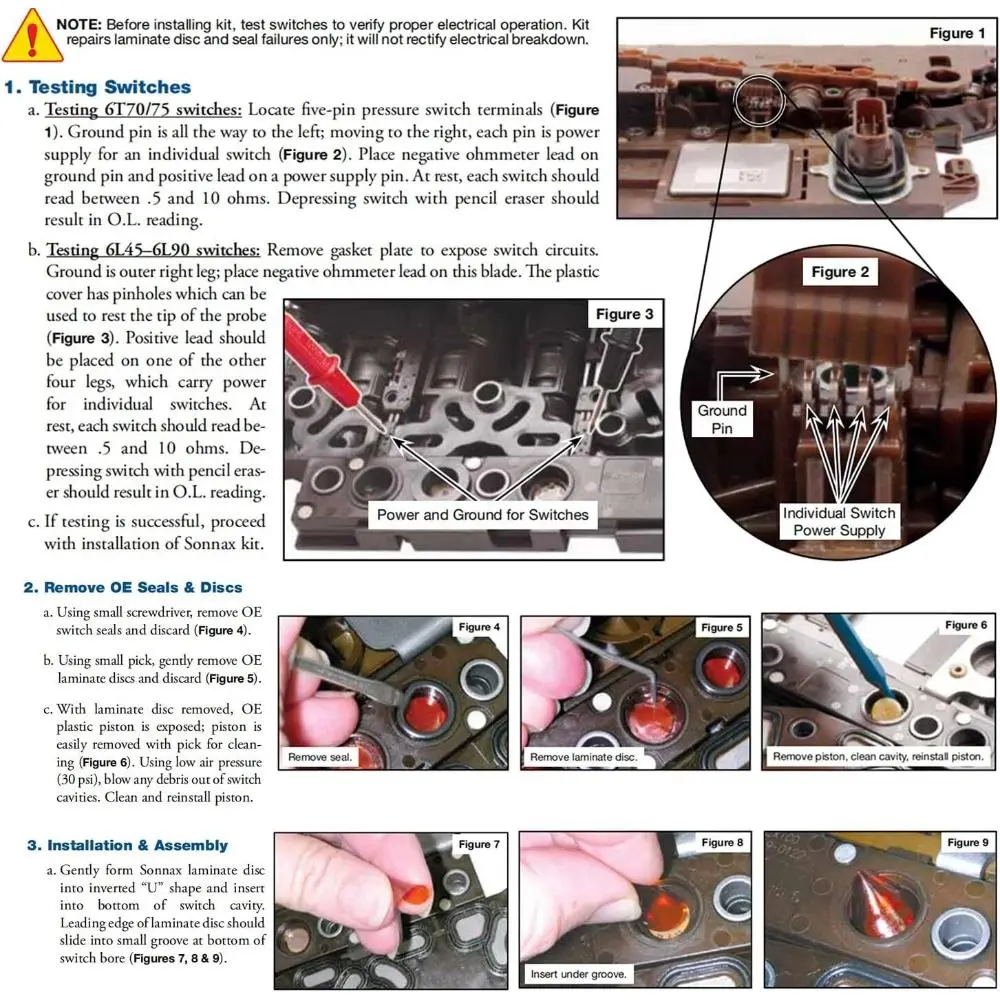 Allows fast & easy installation of laminate discs and seals to restore normal switch operation for GM 6-speed transmissions in listed