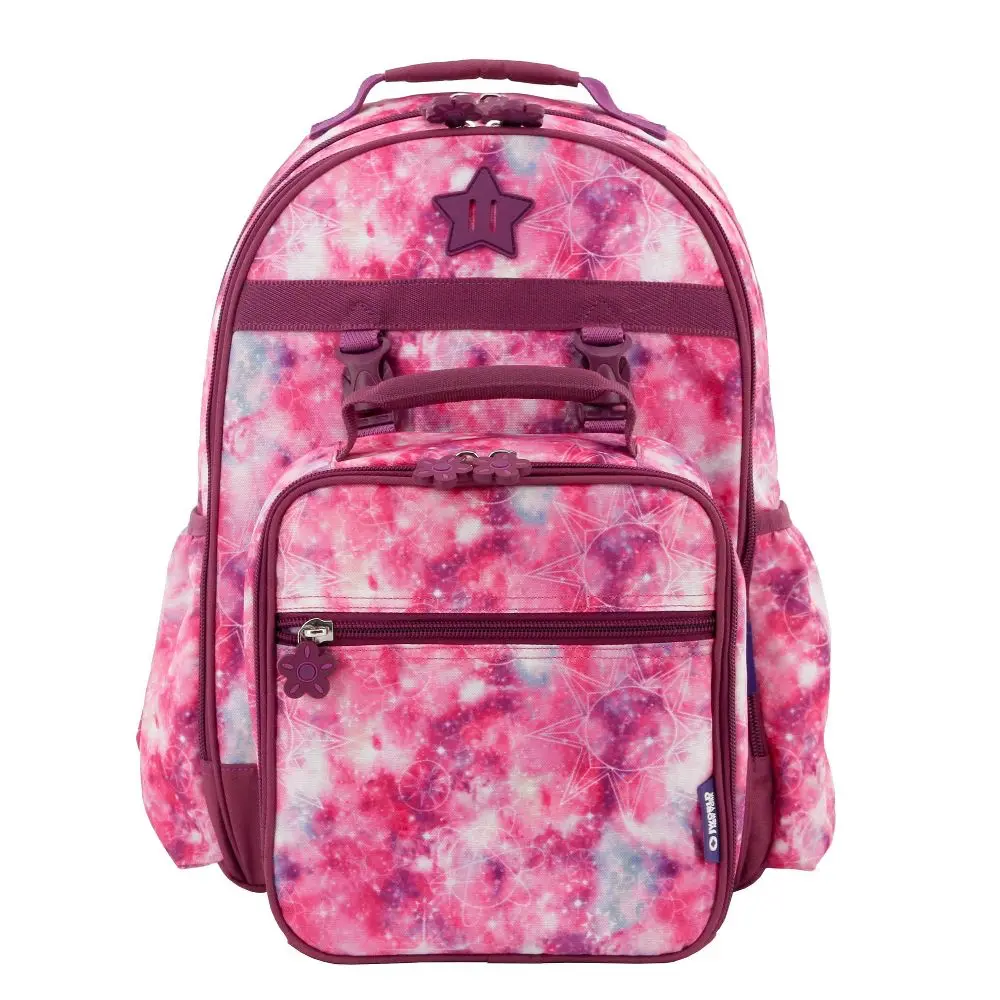 Get your little ones ready for their daily adventures with this kid-friendly backpack. Designed with their needs in mind, our Duet backpack includes an attachable matching kids lunch box that clips to the outside of the backpack so you don't have to worry about your child forgetting their lunch. It features a front pocket with an organizer, making it easy for them to keep their belongings neatly sorted. The side pockets are perfect for holding water bottles, ensuring they stay hydrated throughout the day. With a stitched back cushion and padded shoulder straps, this backpack provides optimal comfort, even during long hours of wear. Whether they're off to school, a playdate, or a family outing, this backpack is designed to meet the unique needs of kids, combining functionality with a playful style they'll love.