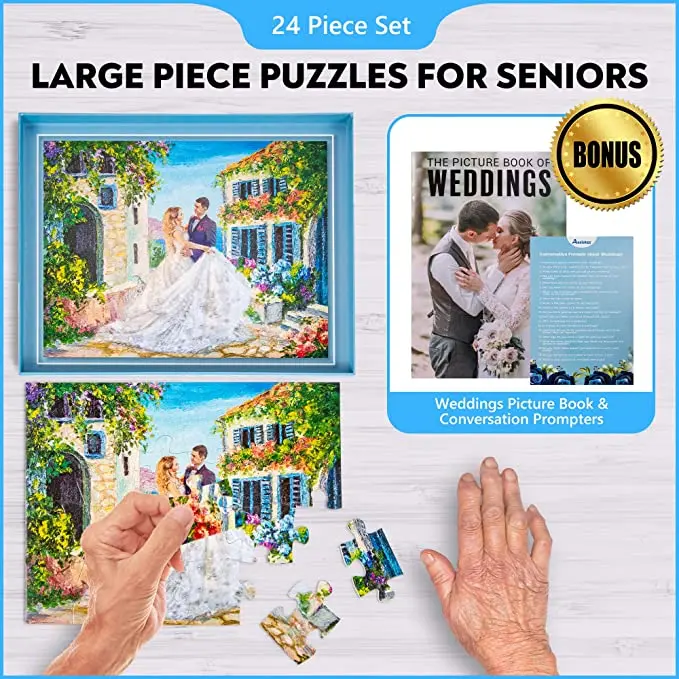 ·SPRING WEDDING DEMENTIA PUZZLE – spend some quality time with your loved ones by engaging in this fun, wedding jigsaw dementia activity for seniors. Designed with a vibrant bride & groom scene, this mature design jigsaw puzzle is reminiscent of happy days and a great conversation starter too