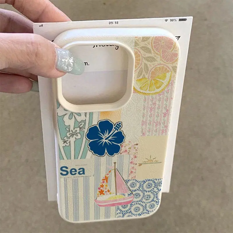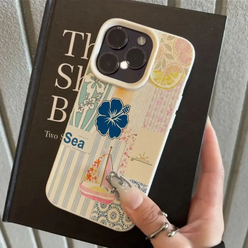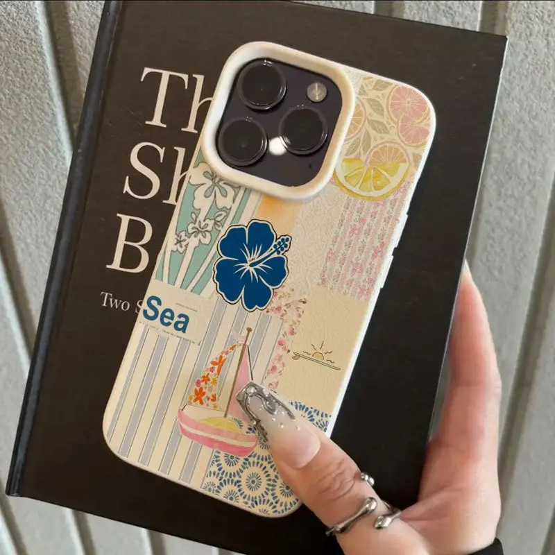 Phone Case - Fresh Seaside Collage Art Patterns Suitable for Iphone 16 Pro Max Cases, Compatible with Iphone 15 Pro Max/14/16 Plus/15/13 Pro/12/11. Easy TPU, Drop-Resistant, Stylish Protective Cover with High Aesthetic Appeal