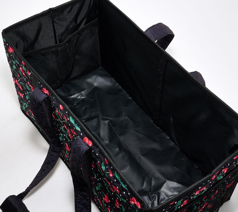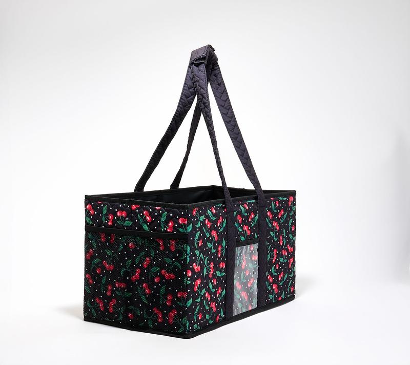 This Home Reflections Set of Two Large Carry All Totes will make organizing your space easier than ever. Whether you are using to store linens or carry groceries, this bag is sure to make life easier. Comes in color choice of black, shell, blue, brown, gingham, or cherry. Each bag measures approx. 20" x 10" x 10" and set weighs around 4 1/8 lbs. Each bag holds up to 50 lbs. Imported.