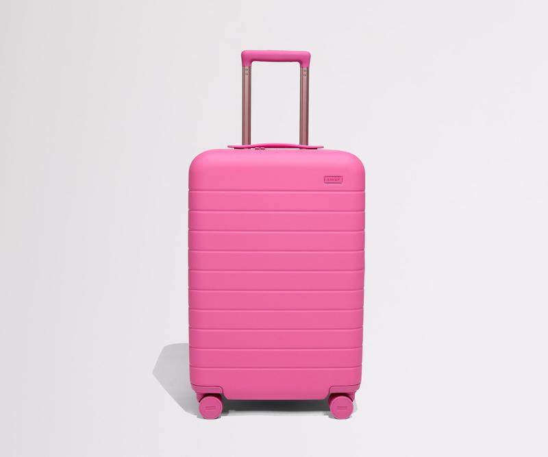 Omg I’m in LOVE with this color. Away bags are the best. It even comes with a pink storage/laundry bag and a pink luggage tag. Please use this color on other sizes! (I want a medium flex in this color too!)