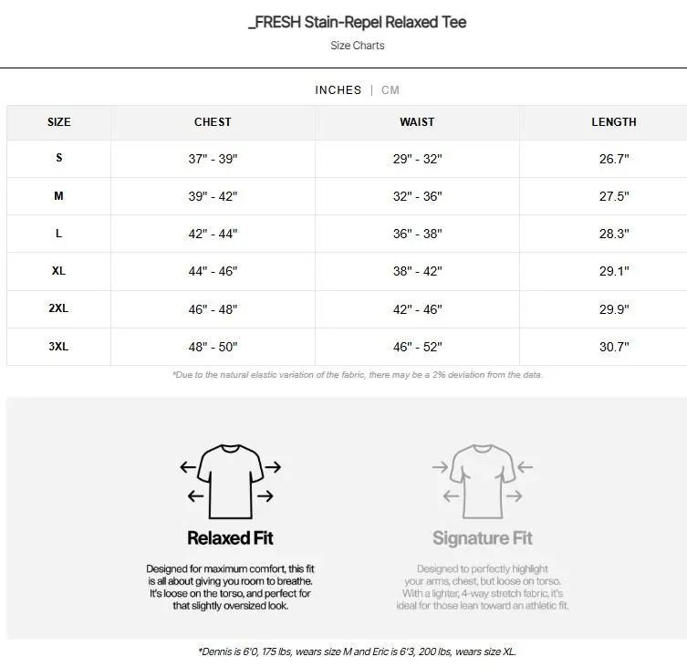 The TexTale Stain Resistant T-Shirt offers both relaxed and signature fit options. Perfect for everyday use, this tee is designed for comfort and stain resistance. The 30S double jersey heavy weight cotton modal (8.8 oz) ensures durability. Certified to Oeko-Tex Standard 100, Class II, it is safe for direct skin contact.