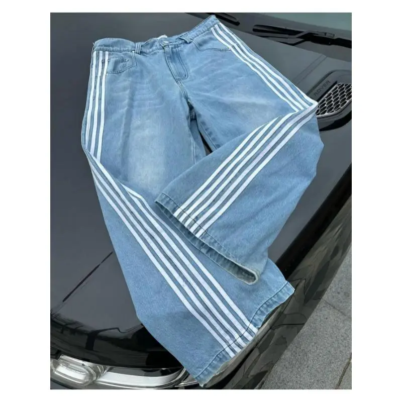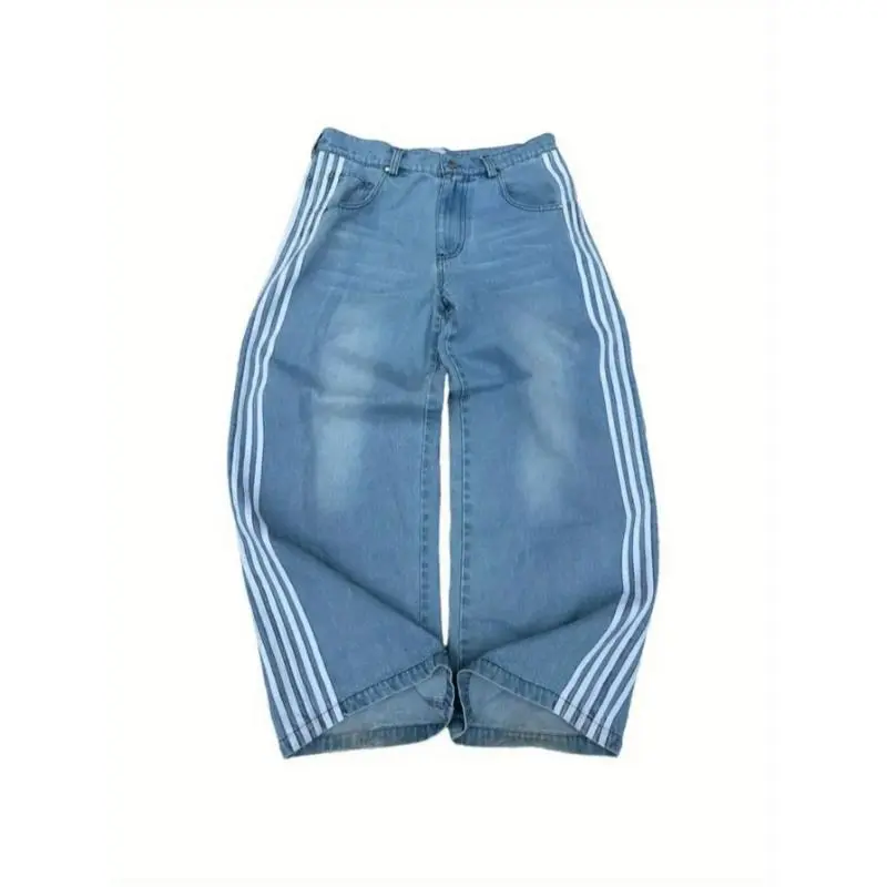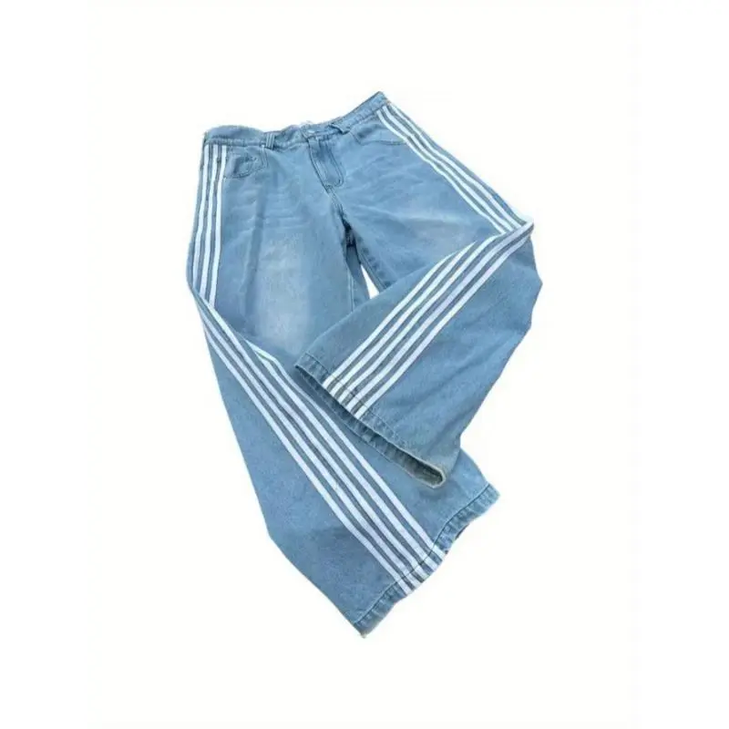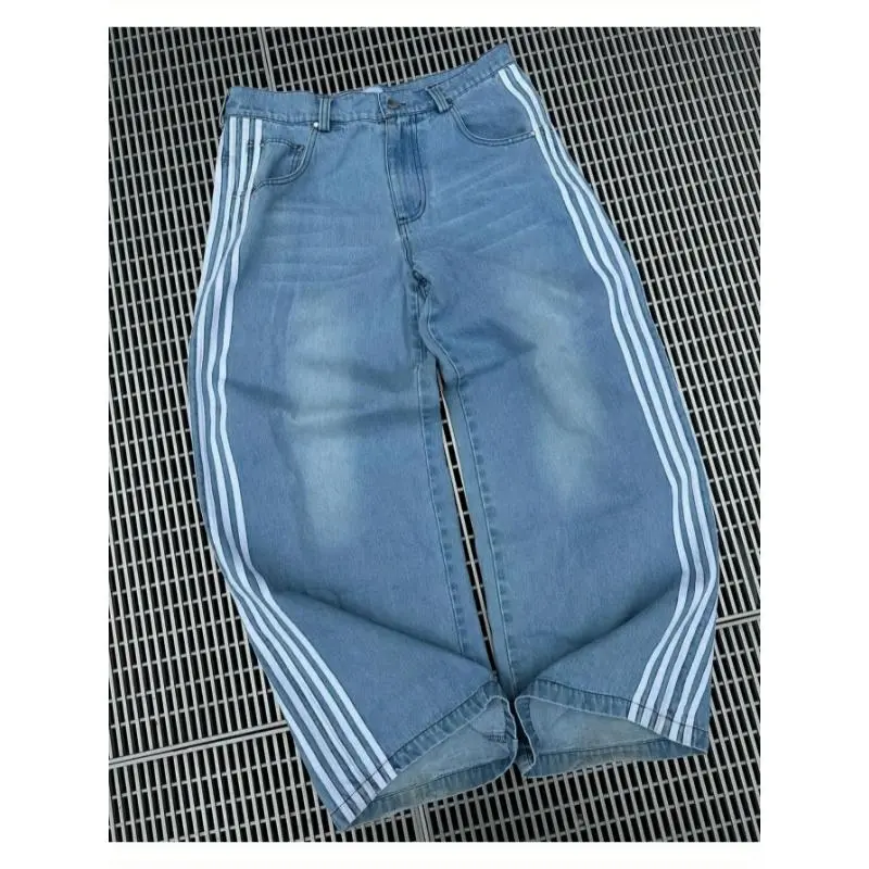 5. Men'sHigh-WaistedDistressedBlueJeanswithStripeAccents-Y2KFashion,StraightFit,CottonBlend,MachineWashable-CasualStreetwearinSizesMtoXXL