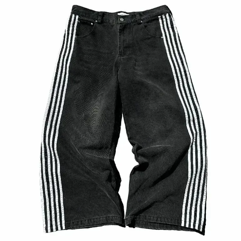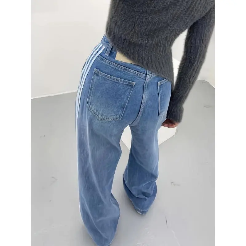 Men'sHigh-WaistedDistressedBlueJeanswithStripeAccents-Y2KFashion,StraightFit,CottonBlend,MachineWashable-CasualStreetwearinSizesMtoXXL