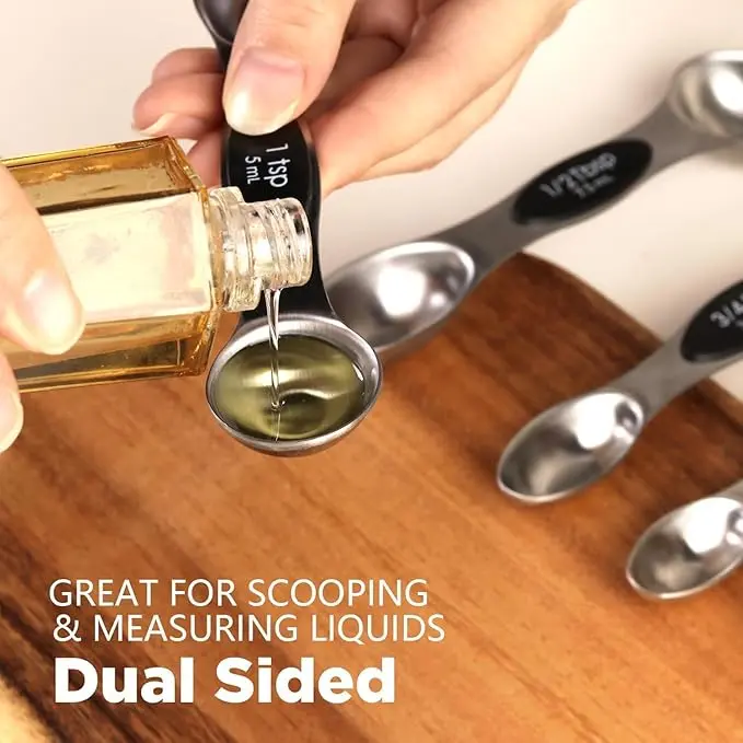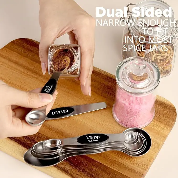 This set of stainless steel magnetic measuring spoons is a must-have for anyone who loves to cook, bake, or measure ingredients. With its durable construction, convenient storage, and precise measurements, it is a versatile kitchen tool that will save you time and reduce waste. Perfect as a gift for loved ones or for yourself.