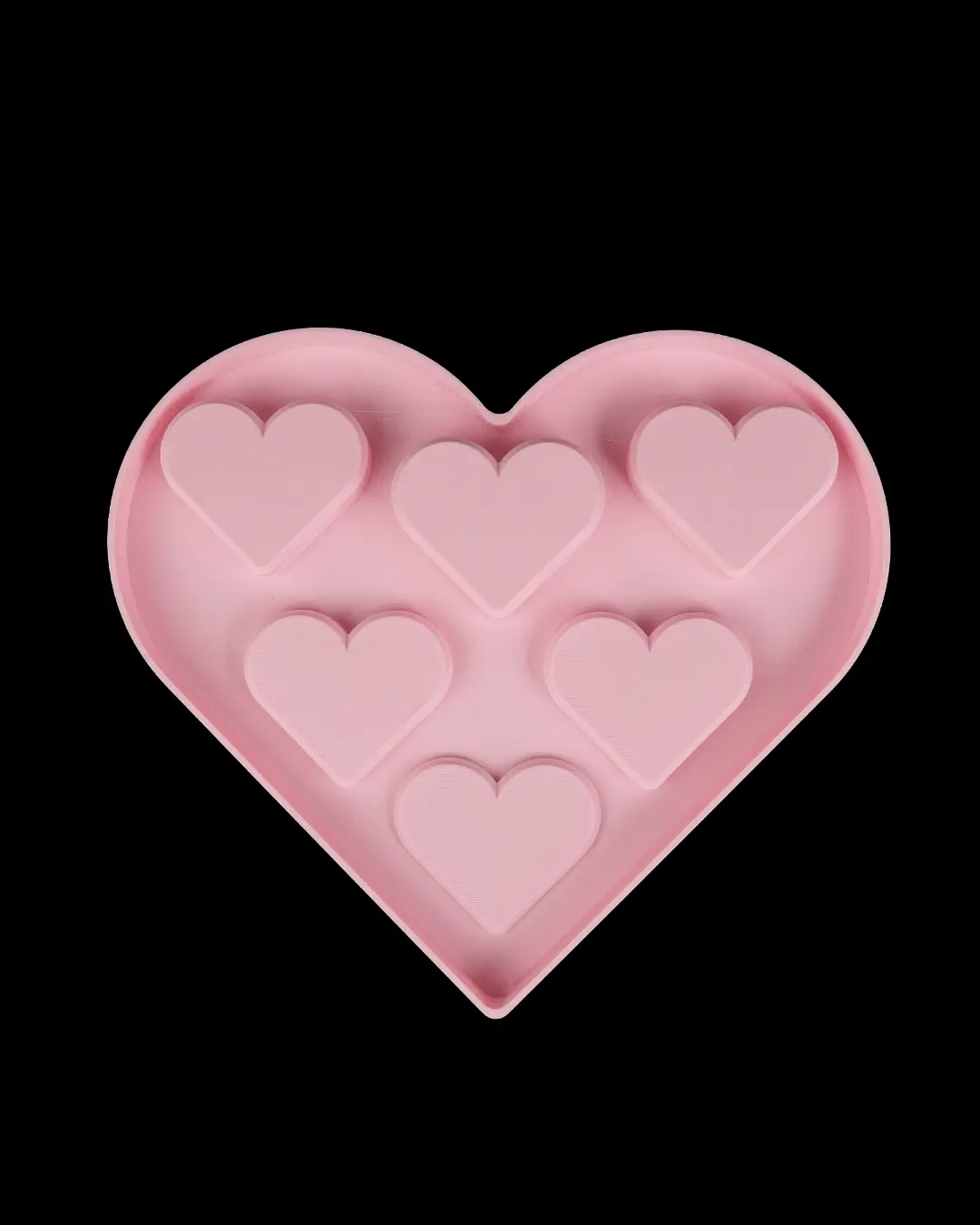 Carefully 3D printed using durable PLA, the Bearly Loved display stand features six heart-shaped wells and a central space, allowing each bear keychain to rest securely while remaining easy to remove for everyday use. The smooth contours and raised edges help keep the collection neatly arranged, whether displayed on a shelf, dresser, desk, or gift table.