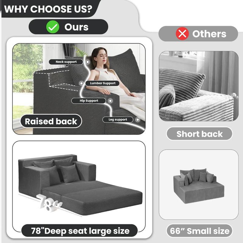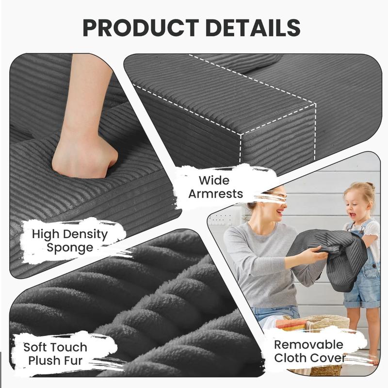 ️ ULTIMATE COZY VIBES: Buttery-soft corduroy fabric + high-density memory foam in every spot (seat, back, armrests included!). 4 removable pillows = next-level snuggle mode