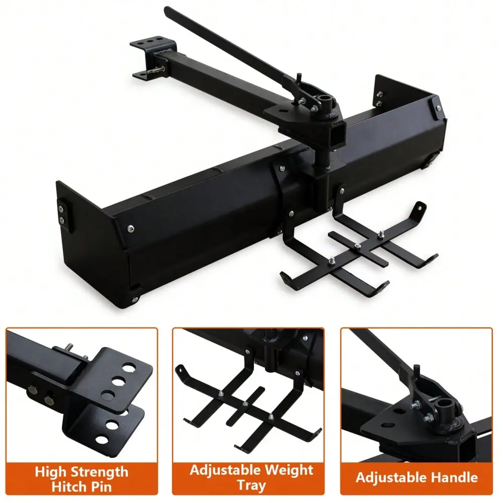 Heavy-Duty Steel Box Scraper Attachment For Lawn Tractor, ATV & UTV, 42" Tow Behind - Ideal For Grading, Landscaping, And Agriculture - Durable Powder-Coated Finish - Includes Box Blade Hitch