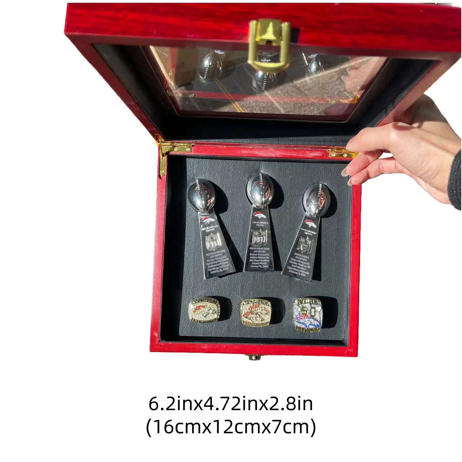 Football Champion Trophy Set, Perfect Broncos Display Case, High-Quality Design, Sports Collectible, Ideal Gift for Sports Enthusiasts, Christmas & Birthday Present 1998/1999/2016