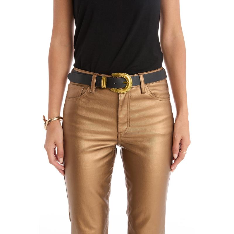 The perfect pair for your Fall denim - meet the Shelly Belt. Made with a soft black leather strap, this western-inspired style features a polished gold cowboy buckle. Style it with your favorite denim.