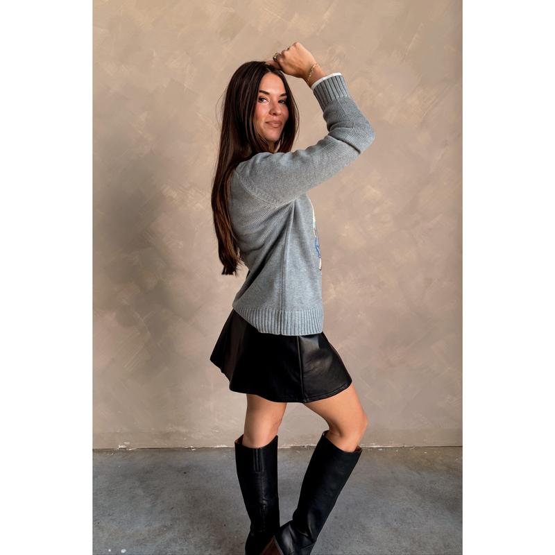 Ribbed hems add structure and a polished finish to the relaxed silhouette, making it easy to pair with jeans, leggings, or skirts. Whether you’re lounging at home or heading out for a casual day, the Tegan Sweater combines warmth, comfort, and playful style in one versatile piece.