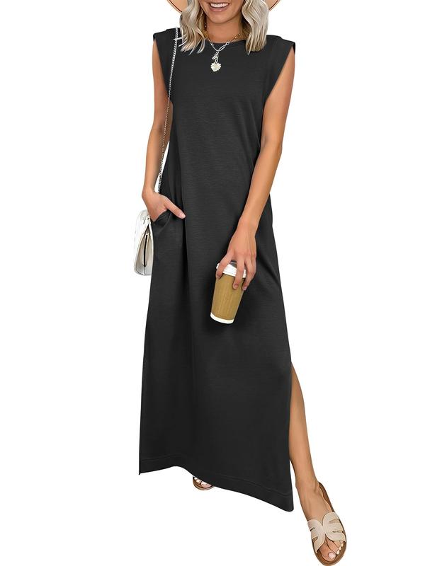 ·Fit Type - The women's long dress is comfy with a regular fit. stylish, fashionable, crew neck, sleeveless, ankle length. The side slit hem accentuates your curves, making you look charming.