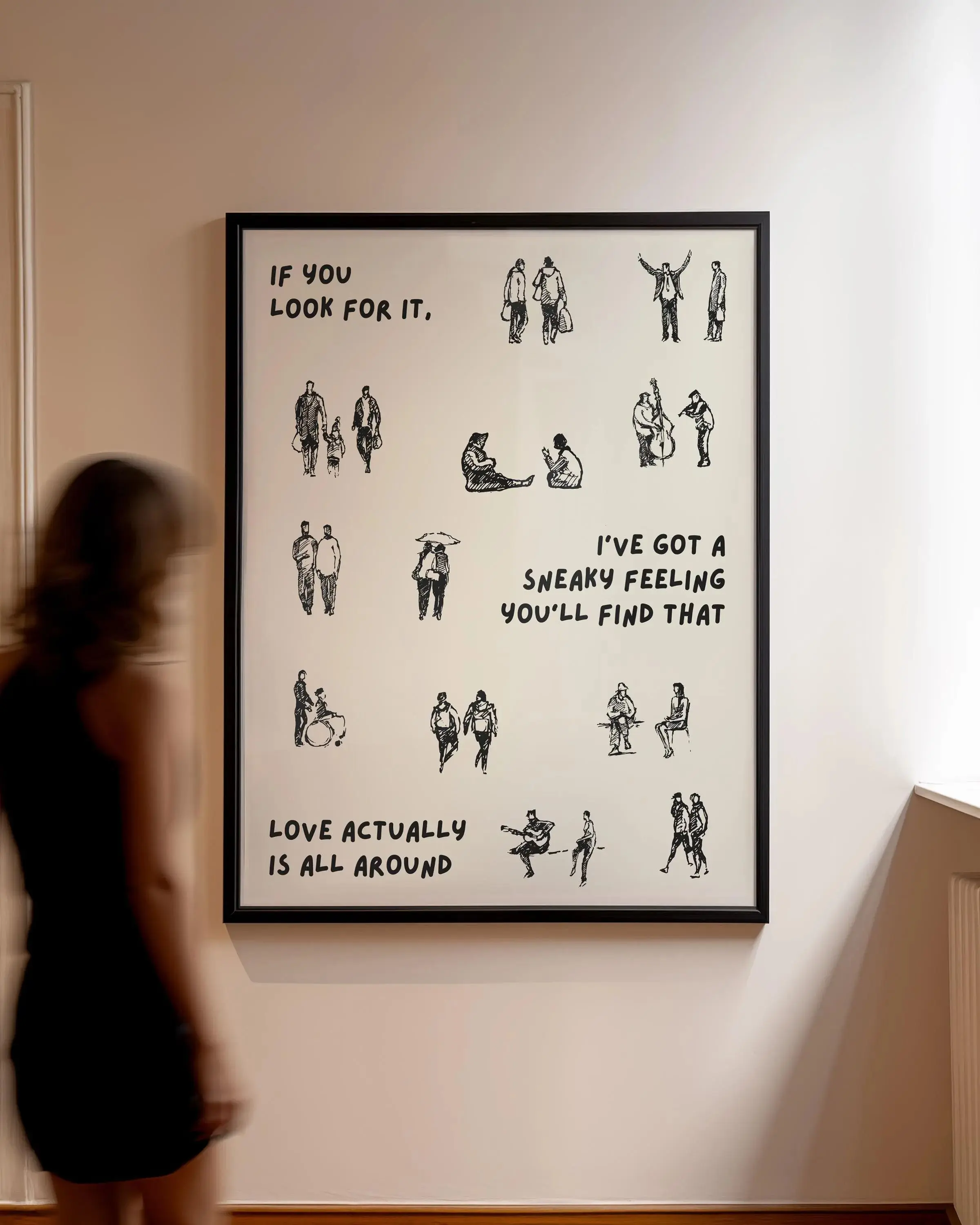 [Sale off up to 65%][Free Ship][No Frame] Love actually is all around Print Dorm Room Aesthetic Wall Art Small People Art Tiny Humans Walking Print Minimalist People Wall Art Retro (5)