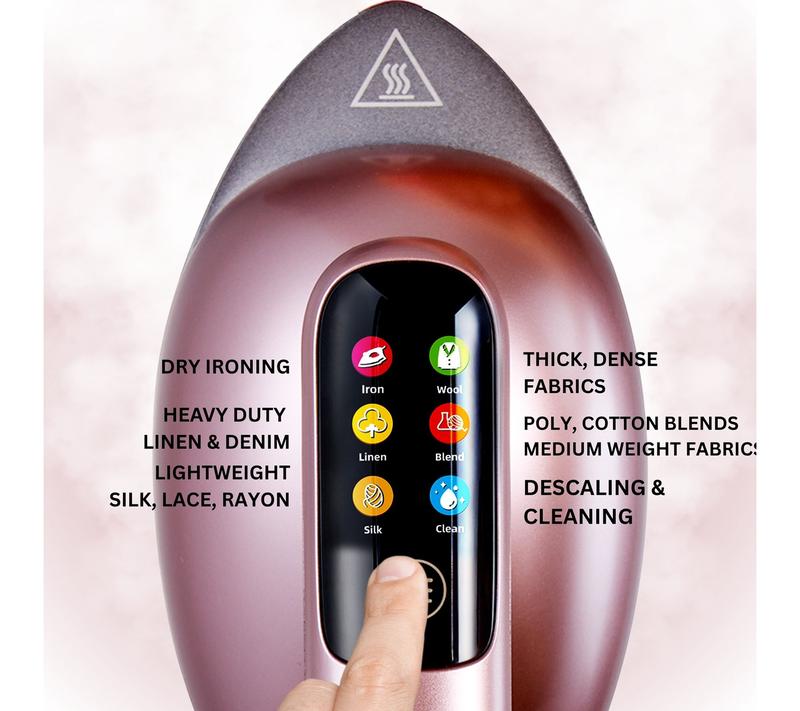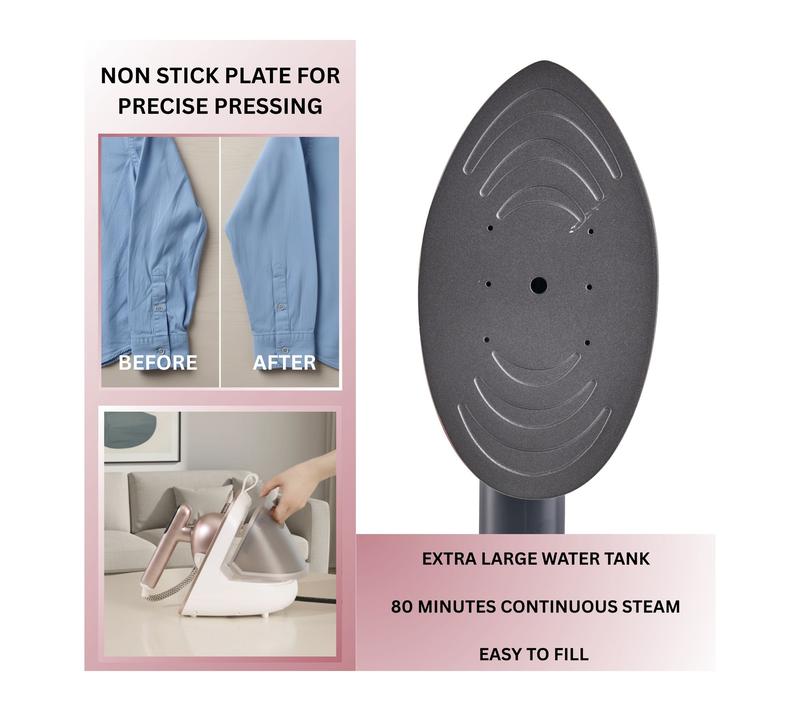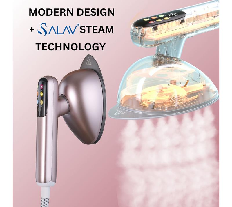 Take garment care to the next level with this clothes steamer, designed to keep everything from blouses to drapes fresh and wrinkle-free in minutes. Foot pedal controls, rolling wheels, and double support poles make steaming effortless, while helpful accessories and a luxe gold finish bring both style and streamlined convenience to your laundry routine. From SALAV.