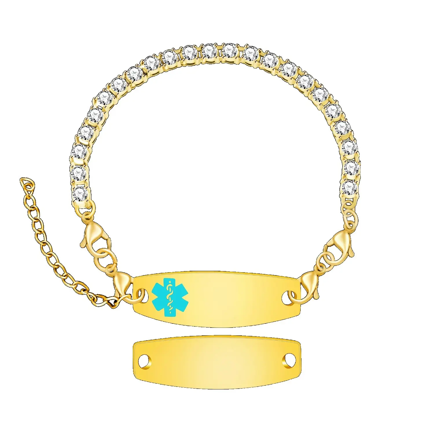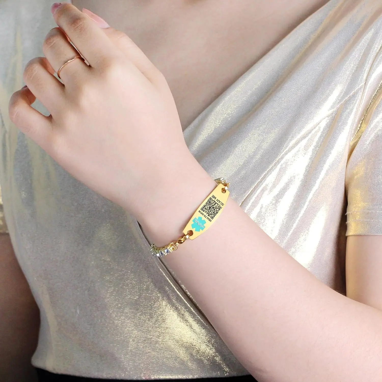 qr code medical bracelet, editable medical alert bracelet, gold medical id bracelet, 18k gold plated medical bracelet, stainless steel medical bracelet, rhinestone medical alert bracelet, qr medical id jewelry, emergency qr code bracelet, medical bracelet for women, double lobster clasp bracelet, adjustable medical id bracelet, teal medical alert bracelet, scan medical information bracelet, medical bracelet without engraving