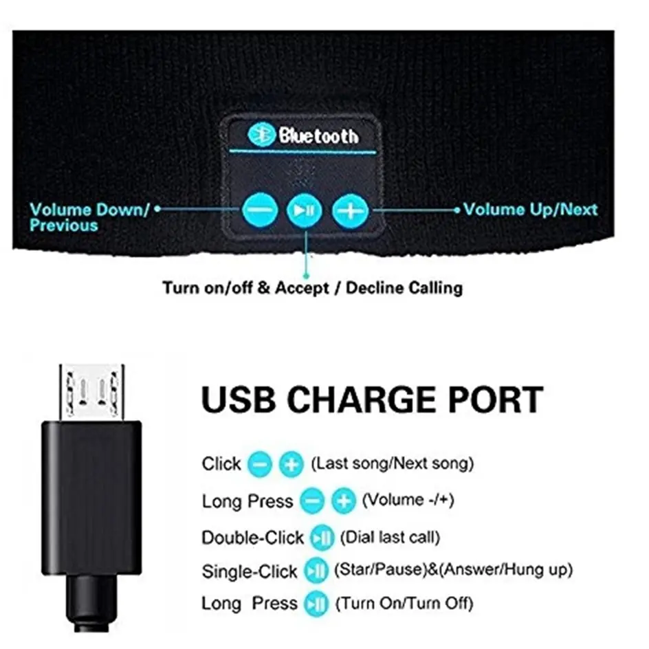 Sport Wireless Bluetooth Music Hat Smart Headset Cap Warm Winter Hat With Speaker Mic For Phone