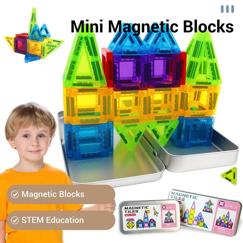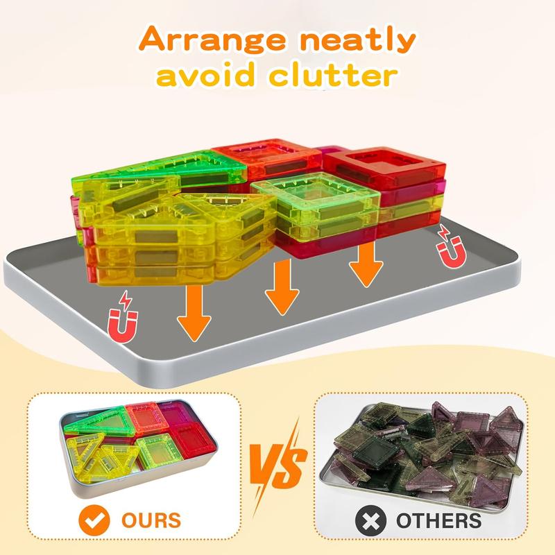 【Travel-Friendly Case】: Comes with a durable iron storage box that ensures easy transport and organization of the magnetic tiles during travel.