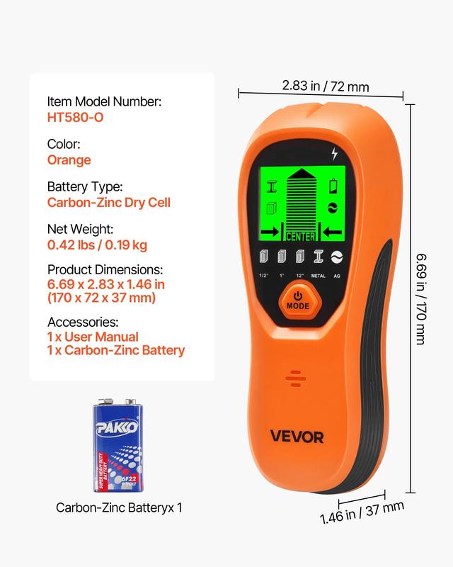 Β·Five Scanning Modes: One stud finder wall scanner for multiple wall structures and depths. Accurately detects wood studs (0.5", 1", 1.5"), metal (2.36"), and wires (2"). Quickly locates hidden objects, reducing errors and making home projects easier