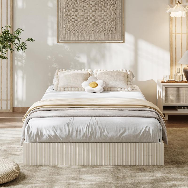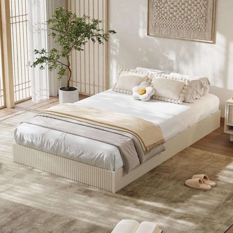 · 【 Modern Minimalist Platform Bed 】: Showcasing clean lines and distinctive fluted accents design, this wooden bed frame blends modern simplicity with subtle texture. The fluted design deliver understated elegance, elevating any bedroom with refined, contemporary style