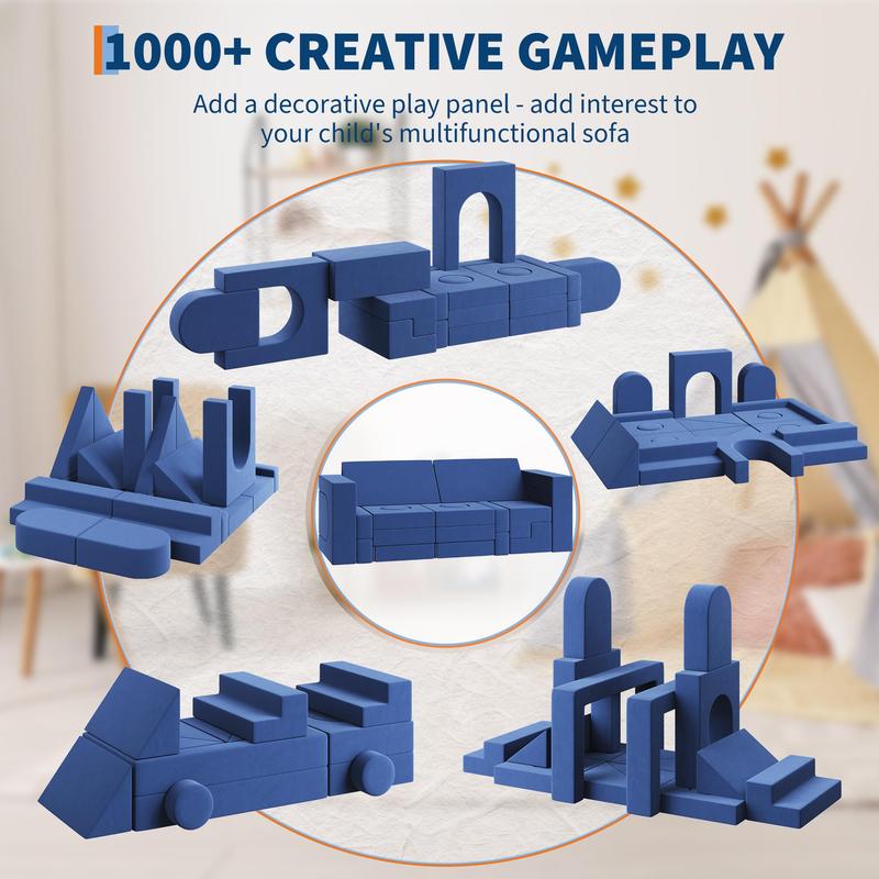 · Unlimited Imaginative Play Couch:The kids play couch is designed to unlock endless imagination with 8 unique shapes foam blocks, allowing children to build forts, cars, tents, scooters, bridges, ramps, or any other imaginary building fort.
