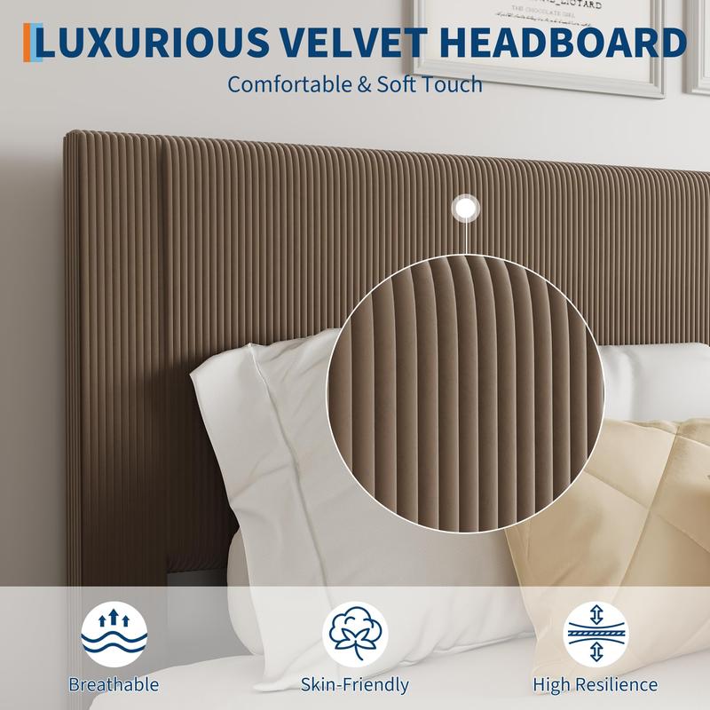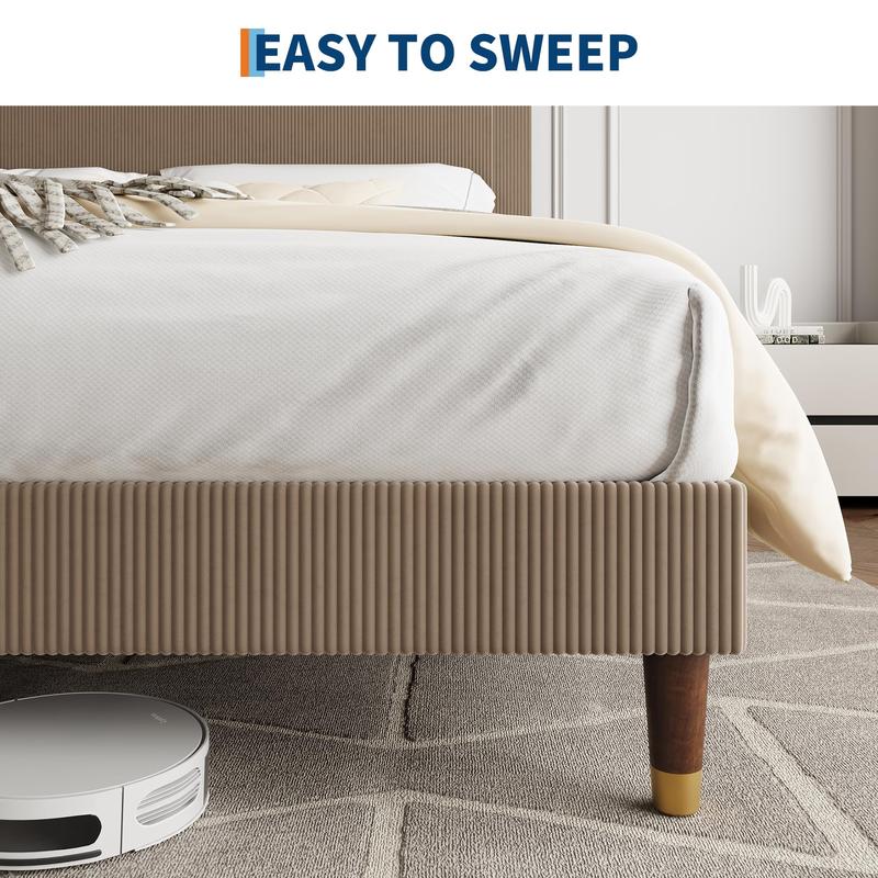 · Stylish and comfortable design: This platform bed frame features a contemporary headboard wrapped in smooth corduroy and soft sponge, adding elegance and comfort to your bedroom; its breathable and skin-friendly surface enhances your sleeping experience
