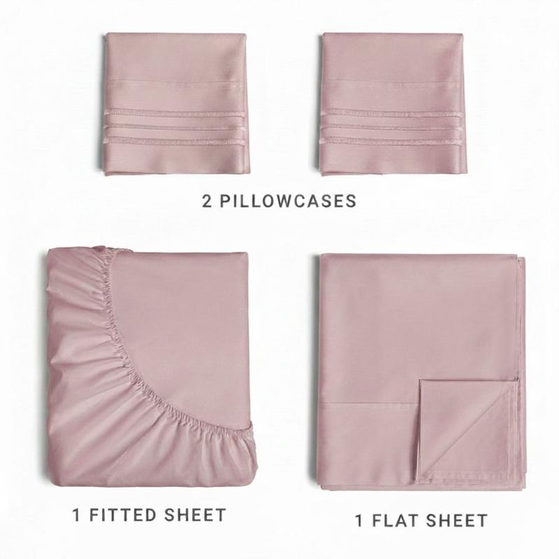 ·4-Piece Set: 1 Flat Sheet, 1 Fitted Sheet, 2 Pillowcases