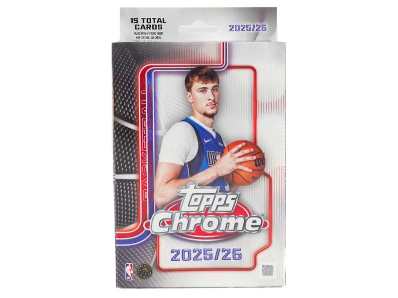·This product is a hanger box for the 2025/26 Topps Chrome Basketball series. It is designed to hold and display basketball cards from this collection. The box features the distinctive Chrome design, making it a standout piece for collectors and enthusiasts.