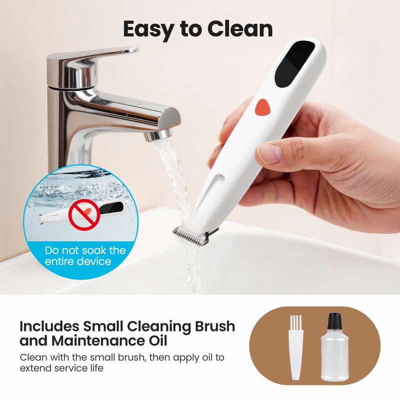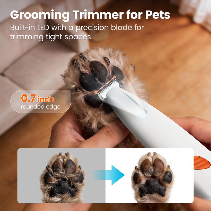Equipped with two-speed settings (low/high) to suit different coat thicknesses, this trimmer also features a built-in LED light to clearly illuminate hard-to-see areas, such as between toes or under paws. The Type-C USB charging port supports adapters and laptops, while the compact, lightweight design fits comfortably in your hand for precise control.