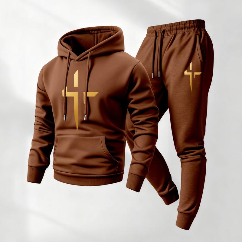 5. Men's Golden Cross Printed Hoodie and Drawstring Sweatpants Set, Menswear, Casual Athletic Long Sleeve Hooded Jacket & Trousers for Fall & Winter, Men's Clothing for Daily Wear, Sportswear Indoor Outdoor, Tracksuit, Athleisure Summer Clothes03