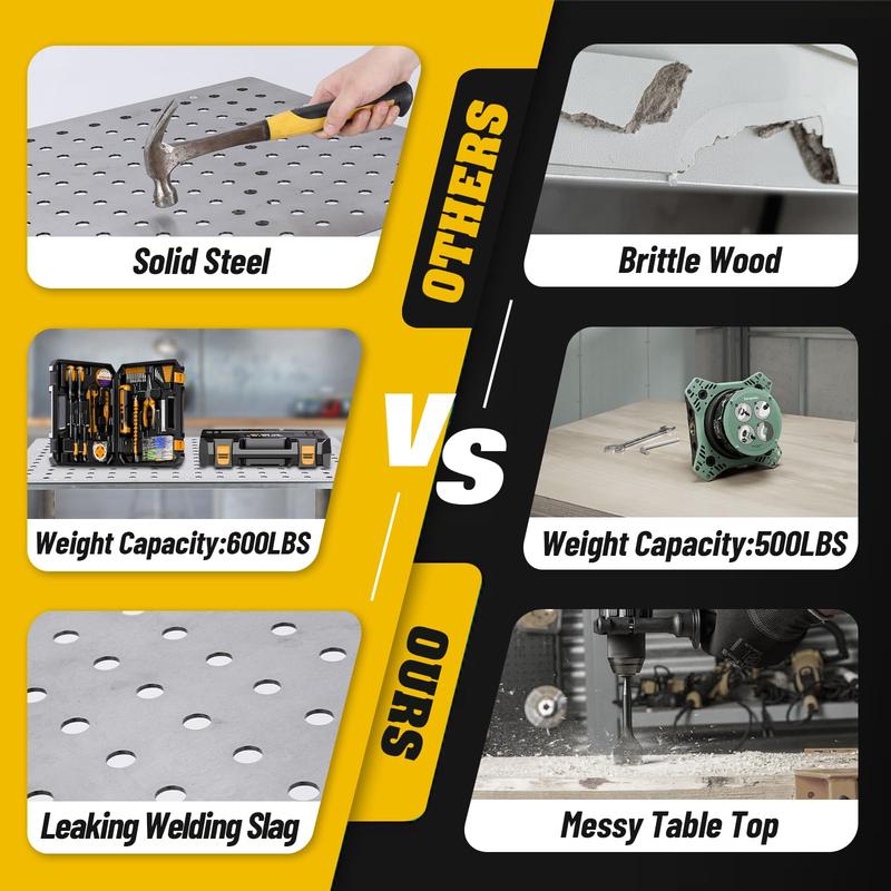 · - **Quick Assembly**: Experience hassle-free setup with this portable welding table. It includes all necessary tools and clear instructions, allowing you to assemble your heavy-duty workbench swiftly and effortlessly, ready to take on any project.
