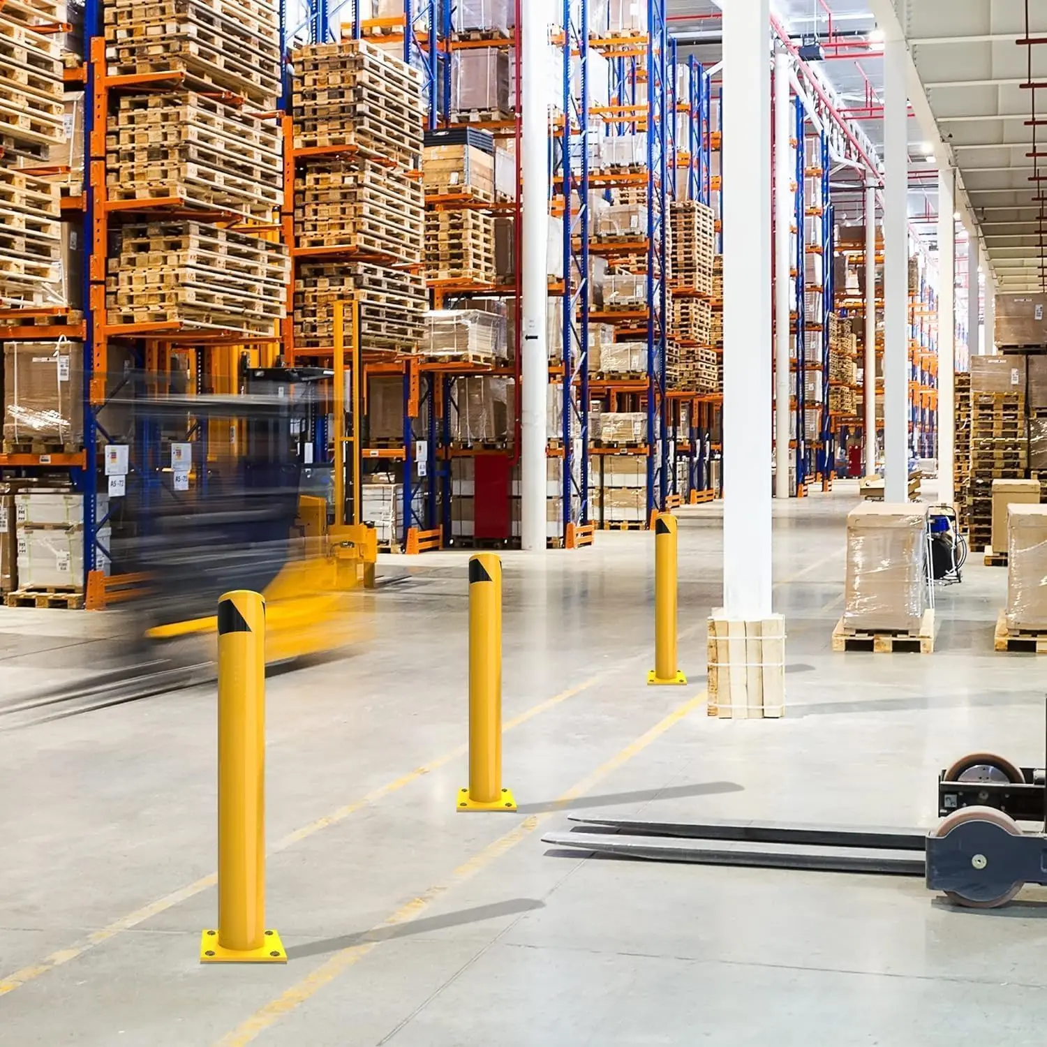 Garvee safety bollard can bring you significant security so that you won’t be involved in the harm arisen from accident vehicle collisions. It is solid enough to withstand impact. The bright yellow finish and the yellow and black around the top could properly remind the vehicles to reduce unexpected collisions. You can put it in your workshop to take care of your equipment. Placing it at entrances, parking lots, sidewalks, or bike paths would also be a good idea.