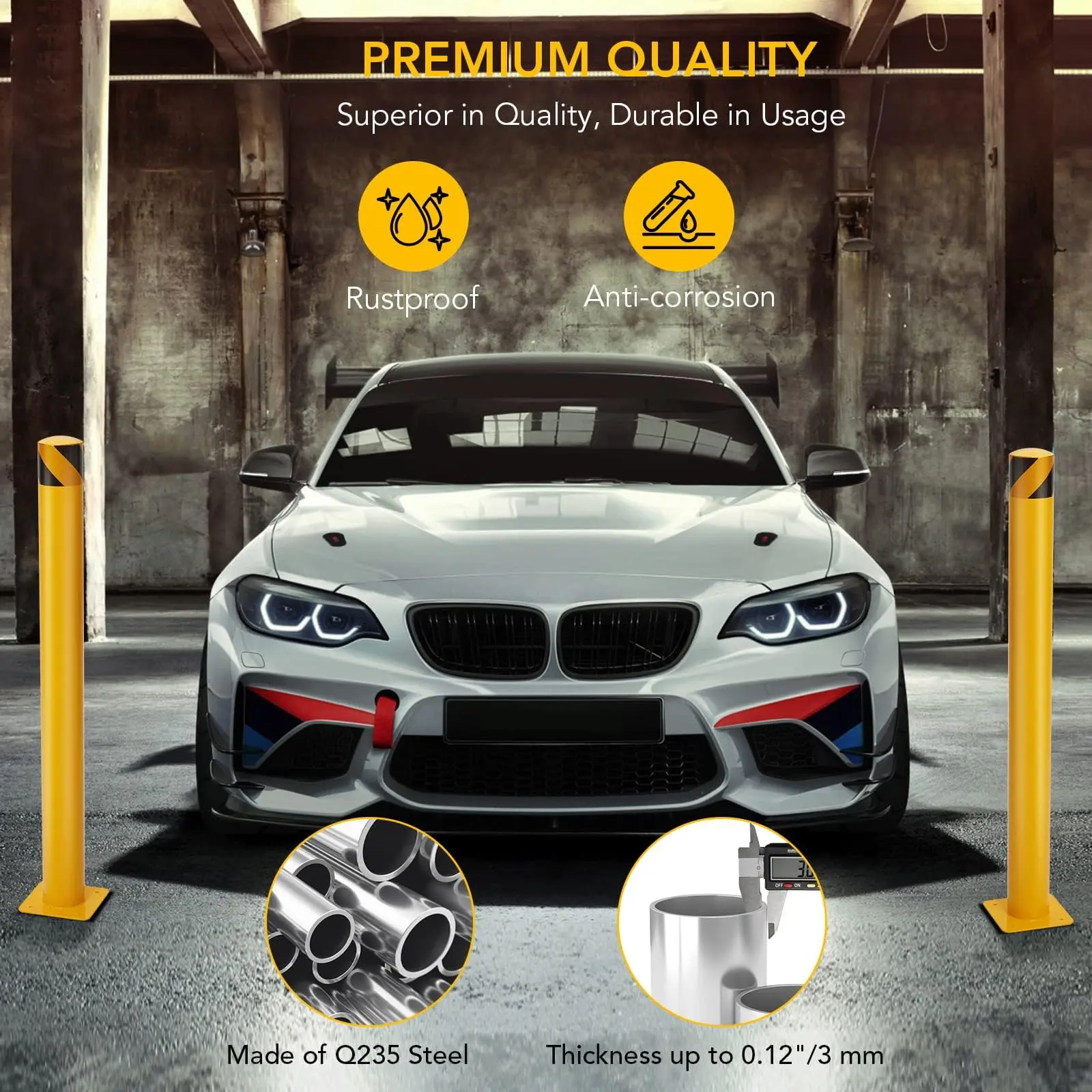 Compared with other bollards with a hollow bottom, our safety barrier is designed with a sealed base, making the parking barrier more stable.