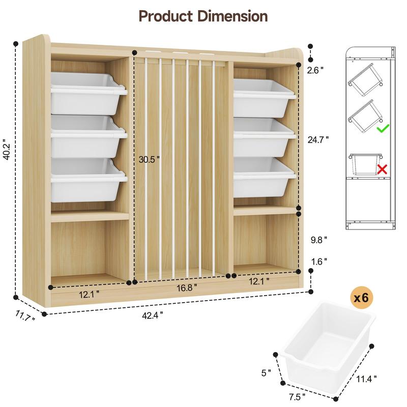 ·Good for Kids: Product dimensions: 42.36" X 11.73" X 40.16". The toy storage shelf features rounded corners to prevent collisions and injuries, and is equipped with a sturdy base and anti-tip straps to ensure stability and prevent wobbling. The kid's bookshelf is designed to perfectly combine safety, strong load-bearing capacity, and educational functions that promote children's growth