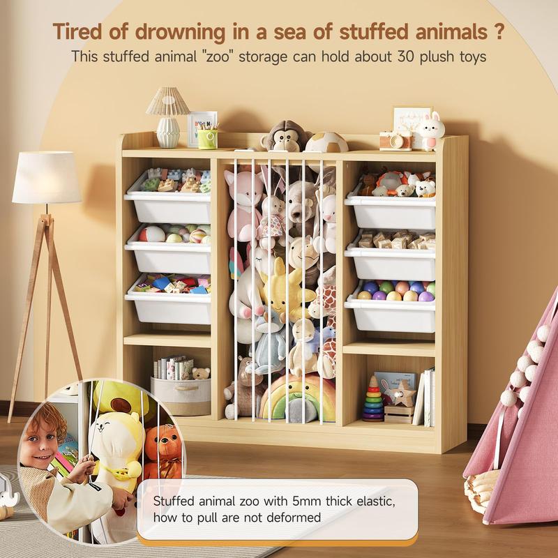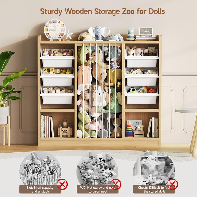 ·Durable and Long-lasting: This toy box cabinet is made with solid wood panels on all three sides, combined with 5-millimeter-thick elastic ropes, providing comprehensive and stable support for the doll. The dolls you want can be easily taken out, making it convenient and fun. The movable thickened plastic storage box is sturdy and durable. Even when used frequently, it can maintain its shape and is unlikely to crack or deform. This significantly enhances the product's load-bearing capacity and service life