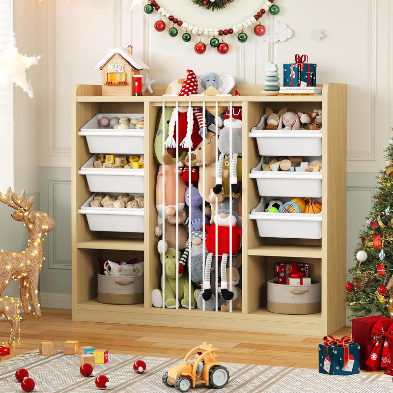 ·3-in-1 Toy Organizer: I highly recommend this toy storage organizer for any family overwhelmed by the chaos of stuffed animals and toys littering the floor. This organizer features a designated zone that fits about 30 plush friends, 6 removable bins to corral all those loose blocks, and extra space for beloved books and go-to toys. It's the perfect way to create a clean, kid-friendly play area
