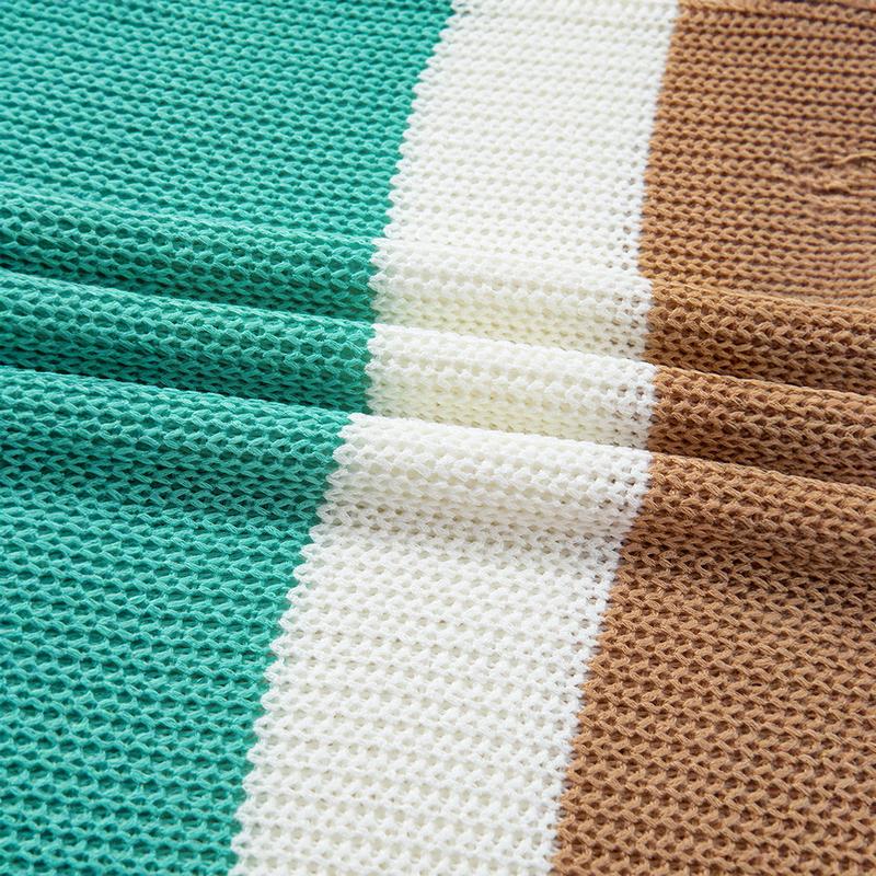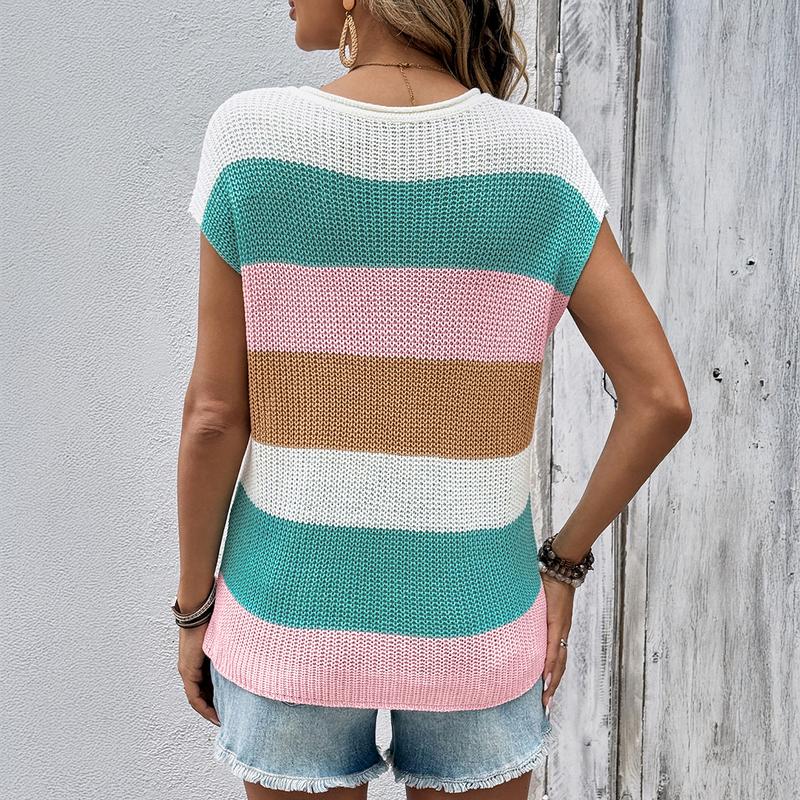 Shewin 2026 Spring/Summer Women's Striped Colorblock Knit Top