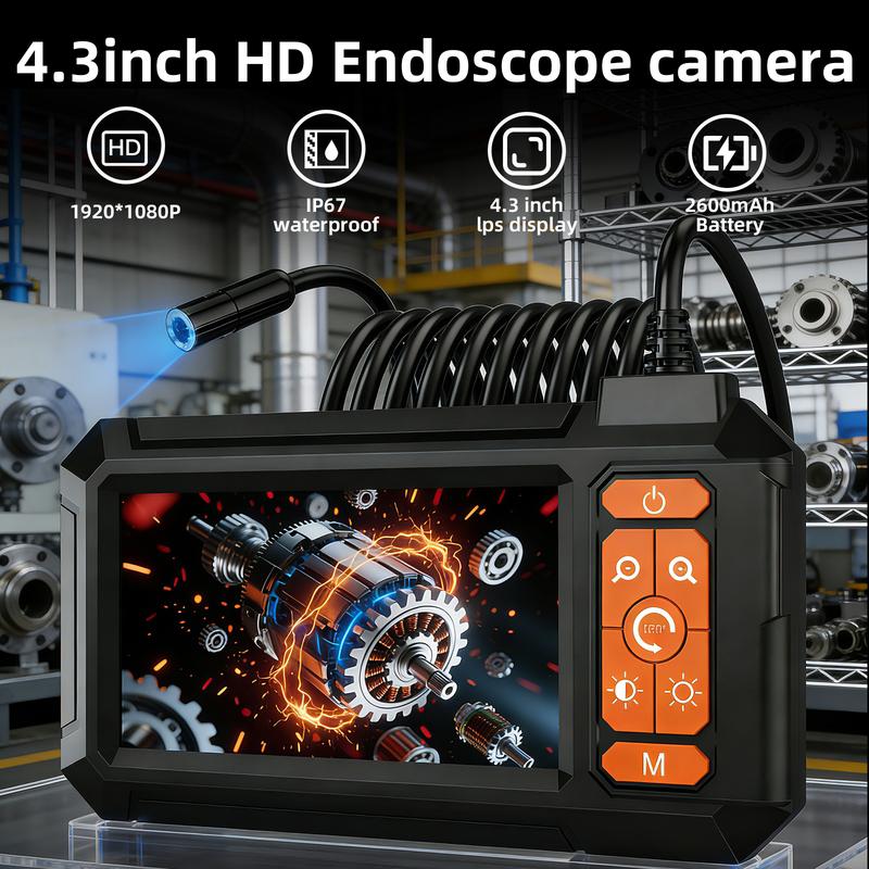This Industrial Endoscope Camera features a 4.3" HD screen for clear visibility. It includes 8 adjustable LED lights for enhanced illumination. Perfect for automotive, sewer, and plumbing inspections, this borescope camera is IP67 waterproof. Ideal as a gift for men, it offers versatile inspection tools.