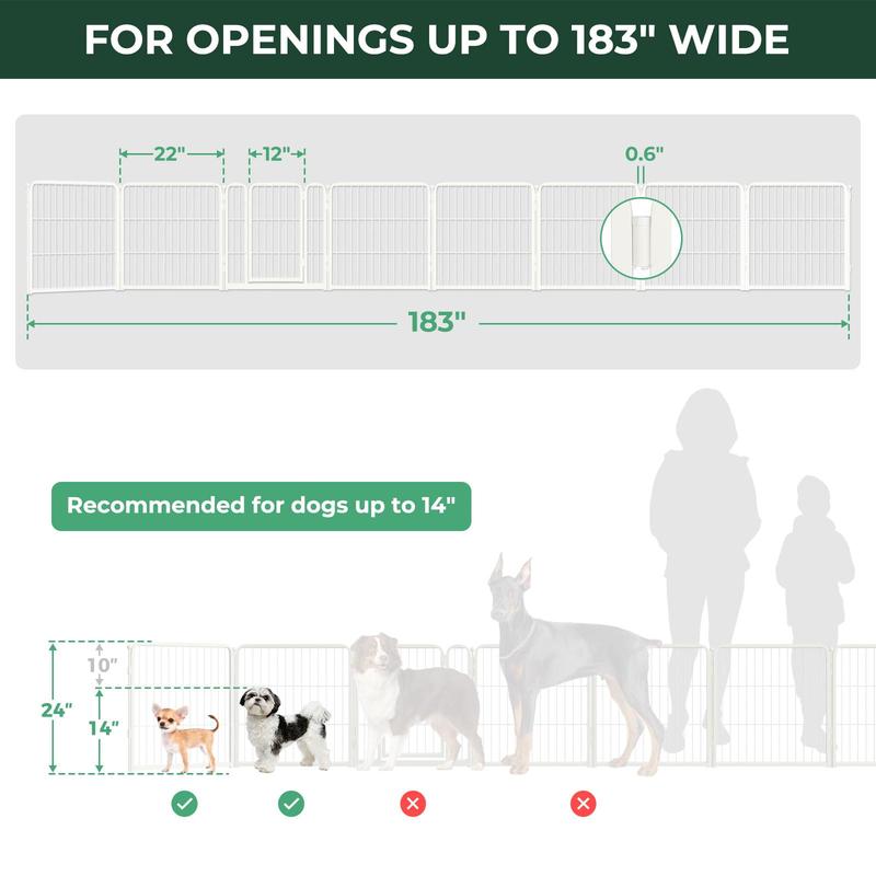 FXW Dog Gate Extra Wide Indoor Use, 24"/32"/40"/45" Height, Adjustable Width Up to 92"/111"/137"/165"/183"/219" Inch with 4/6/8 Wire Panels, for Puppies and Small/Medium/Large Dogs