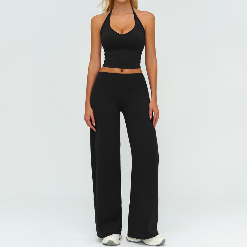 Two-Piece Strappy Crop Top with Straight-Leg Pants