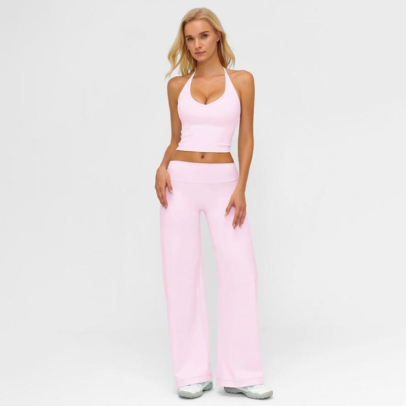 This fitness set includes a strappy crop top and straight-leg pants. Perfect for gym workouts and Pilates, it offers a stylish strappy V-neck top. Ideal for outings, this set is the ultimate choice for fitness and casual wear. The two-piece design ensures comfort and style during your activities.