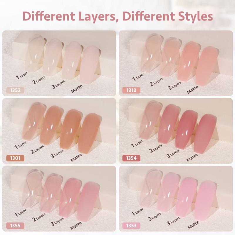 GAOY Pinkish Jelly Nude Pink Gel Nail Polish Set, 6 Transparent Sheer Colors Soak Off UV Light Cure Gel Polish Kit for Salon and Nail Art DIY at Home